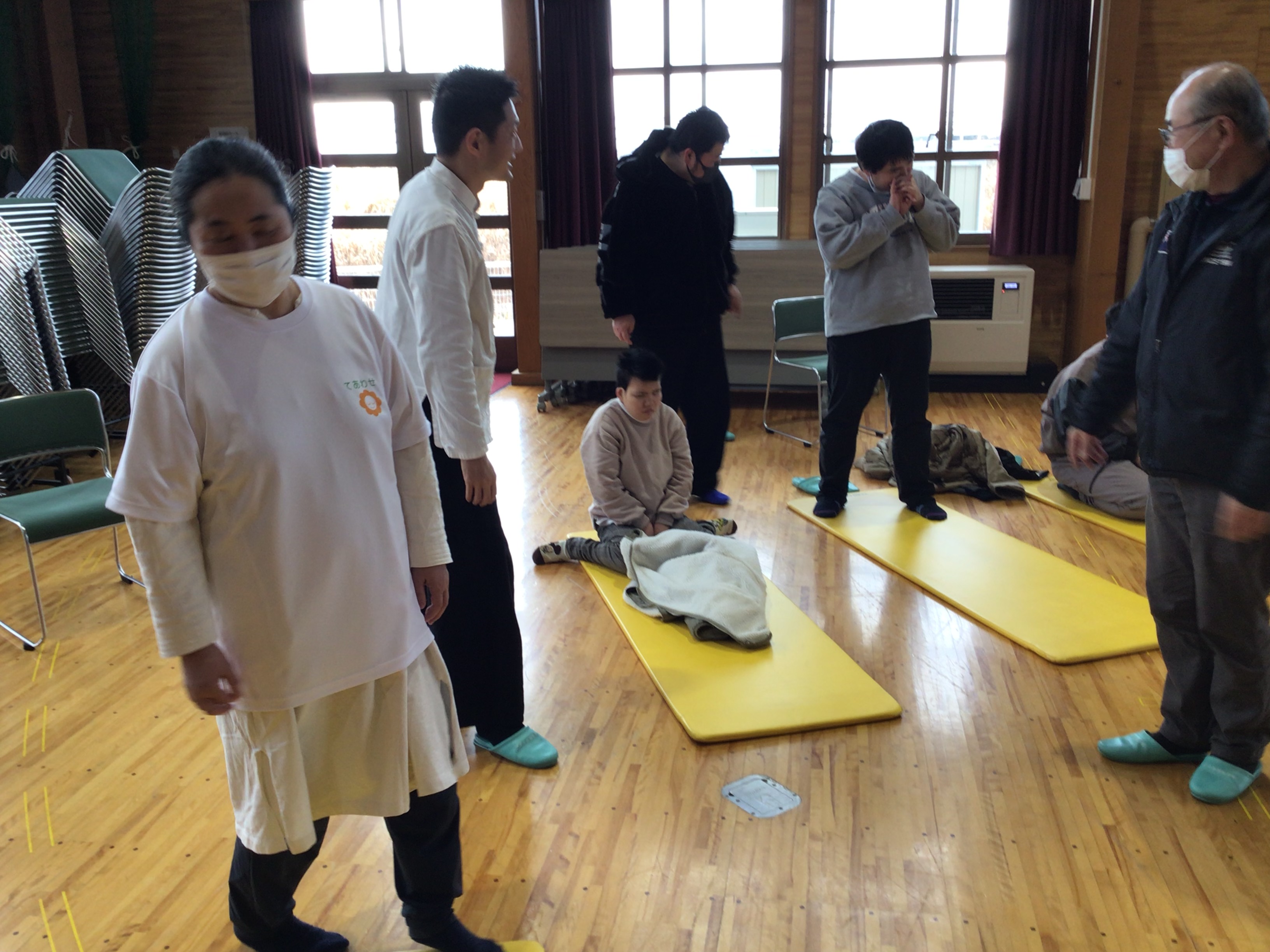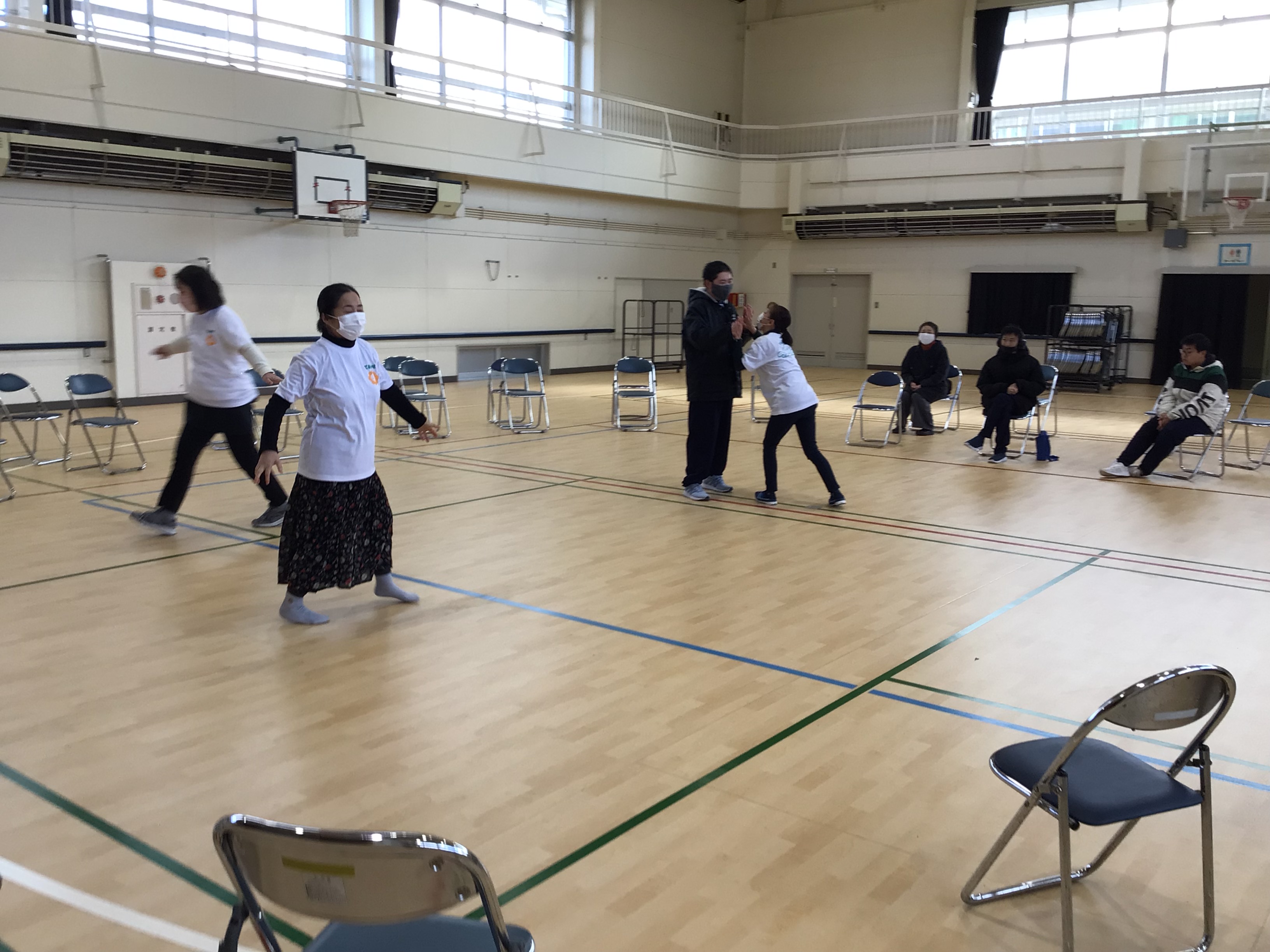 赤井市民センターに集まったメンバーや、みらいに残ったメンバー、自宅から参加したメンバーがダンスフィールド千葉遥さんのリードで「てあわせ」をしました。